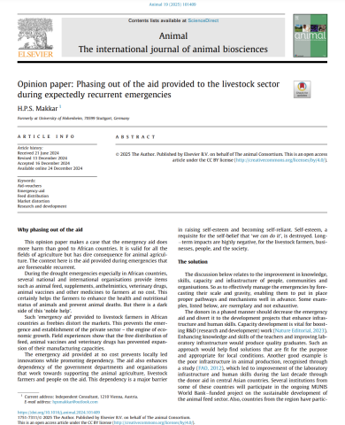 Open access opinion paper that makes a case that the emergency aid do more harm than good to African countries. It is valid for all the fields of agriculture but has direct consequence for animal agriculture. The context here is the aid provided during emergencies that are foreseeable recurrent.